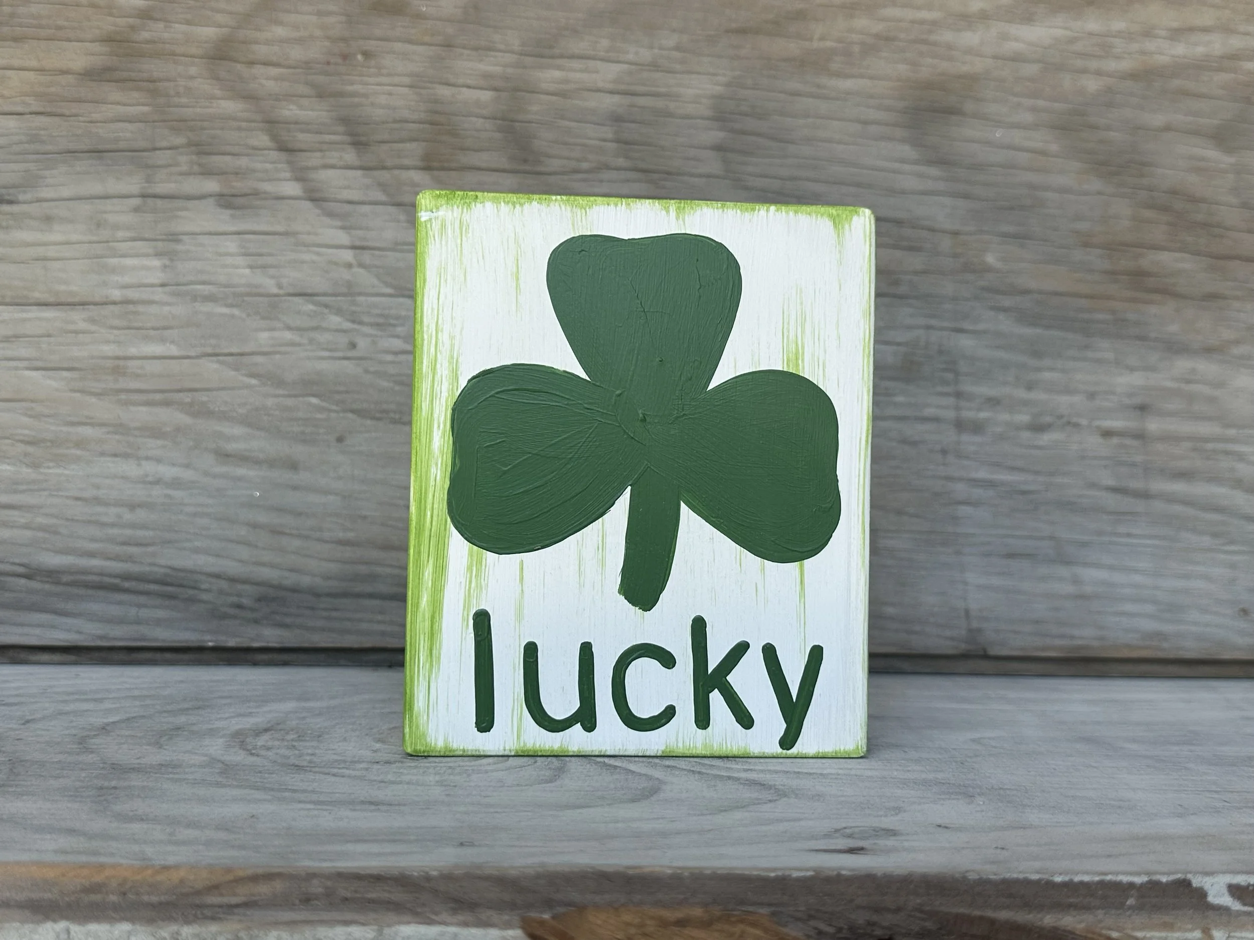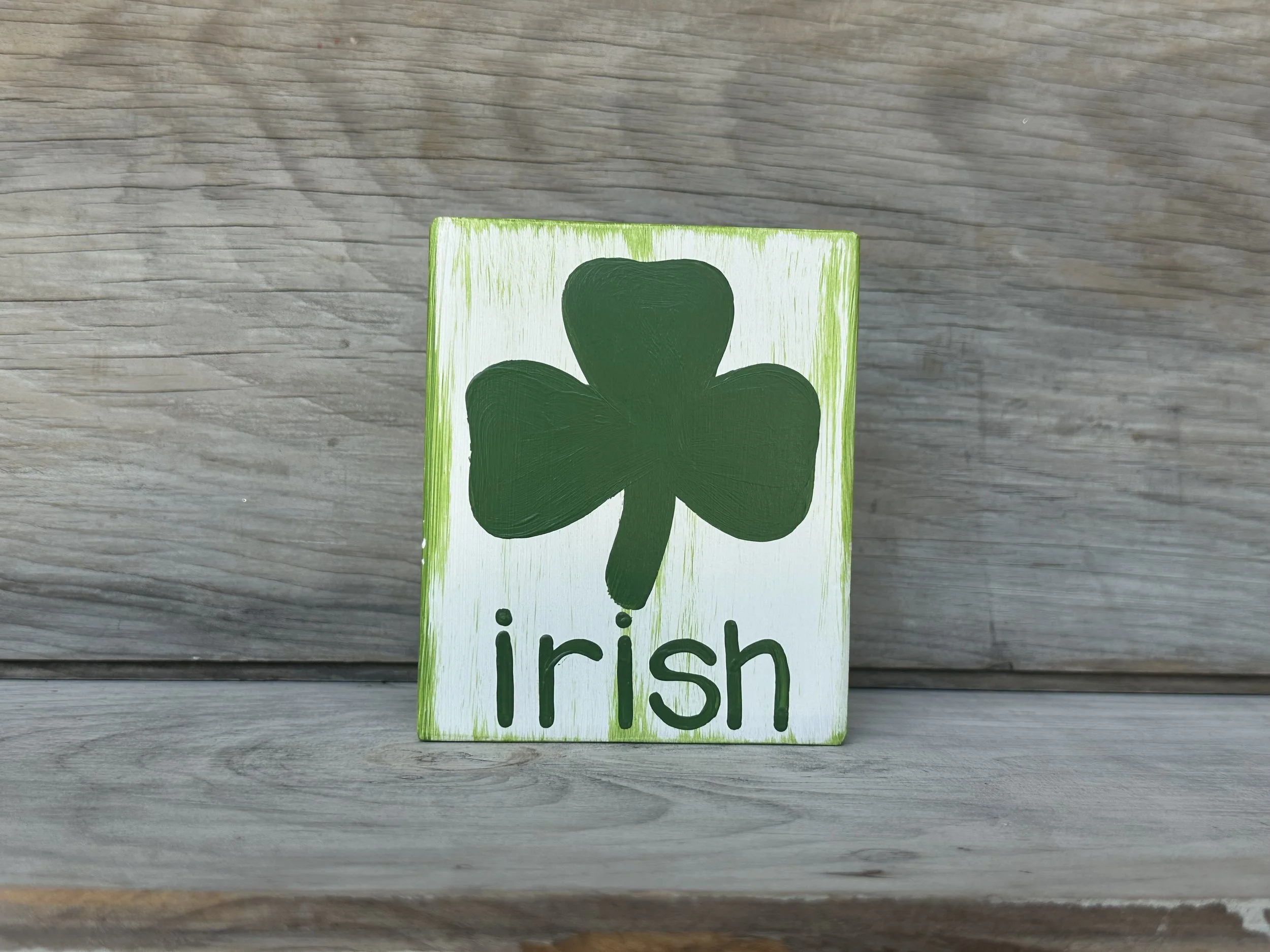 Store › Shamrock Wood Blocks Image 1 of 2 Image 2 of 2 Shamrock Wood Blocks $28.00 Hand Painted Wood Blocks that can sit on a shelf or table.Size - 4.5×5'“x1.2” Wording: Lucky Irish Add To Cart Added! Hand Painted Wood Blocks that can sit on a shelf or table.Size - 4.5×5'“x1.2”