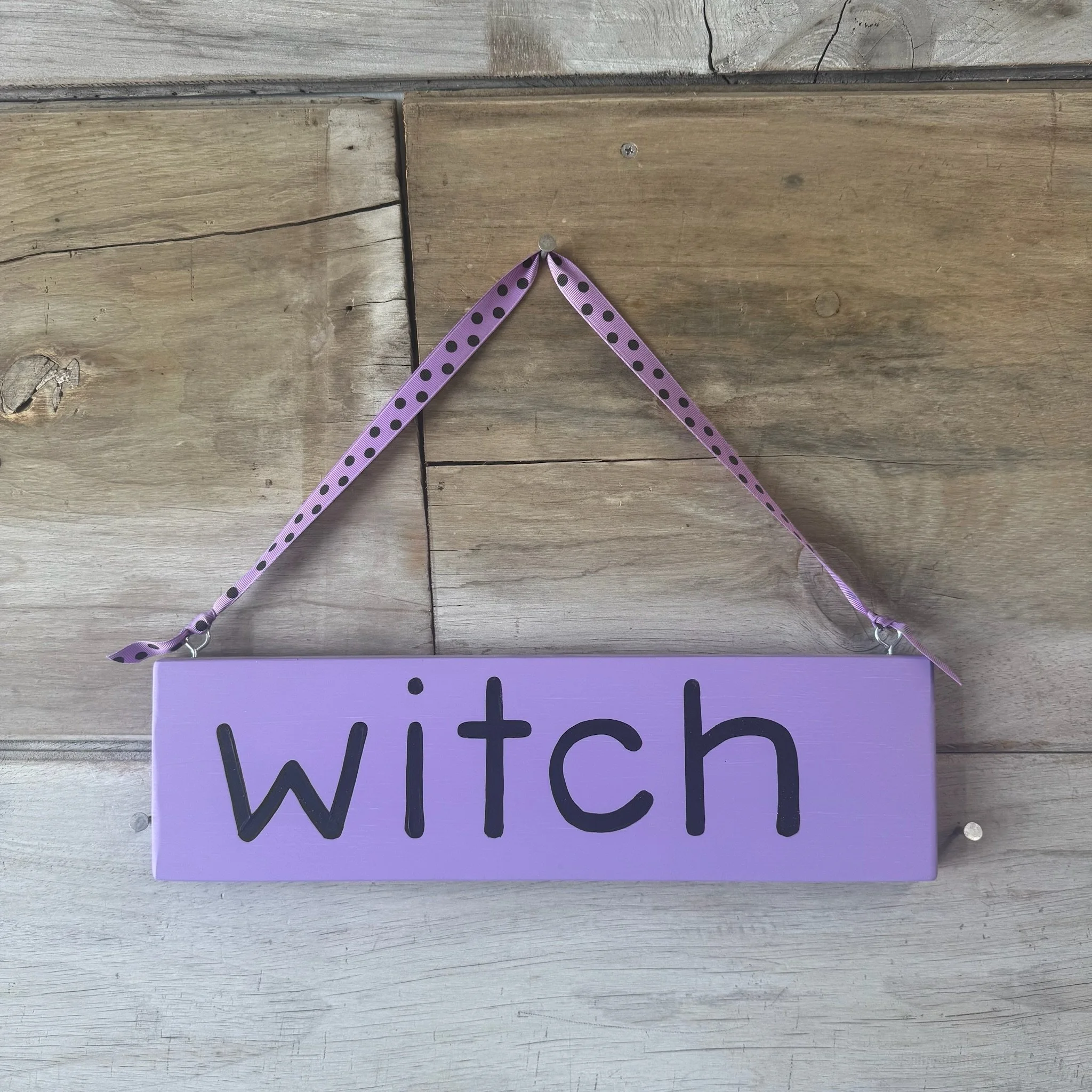 Store › Witch Wood Sign Image 1 of 1 Witch Wood Sign $32.00 Hand Painted Wood Sign with Ribbon to Hang4.5”x16” sign with 8” ribbonIndoor/Outdoor. Exterior Painted Used. Add To Cart Added! Hand Painted Wood Sign with Ribbon to Hang4.5”x16” sign with 8” ribbonIndoor/Outdoor. Exterior Painted Used.